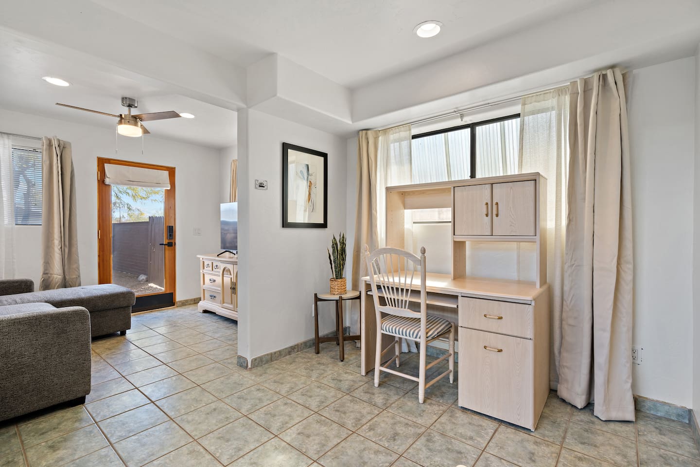 Discover this retreat that’s perfect for a relaxing stay! Just 2 miles from UofA and Banner Medical Center, and within a mile of great restaurants and gyms, this cozy haven has everything you need. Work in the private office, and rest easy on quality mattresses with blackout curtains. Enjoy a fully stocked kitchen, shaded dining area, BBQ, AC, on-site laundry, and a spacious fenced yard.